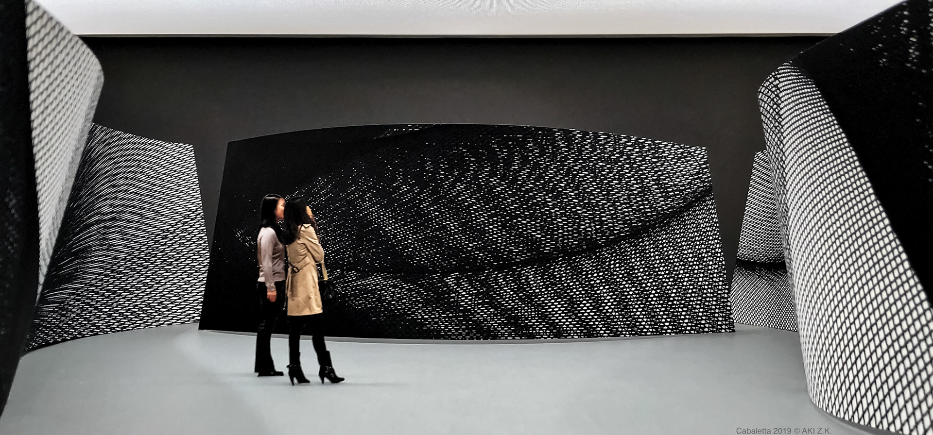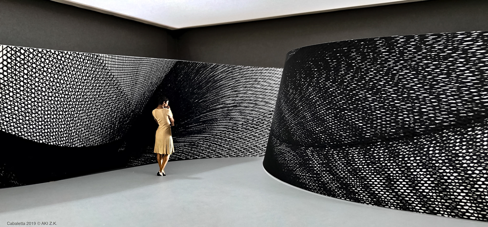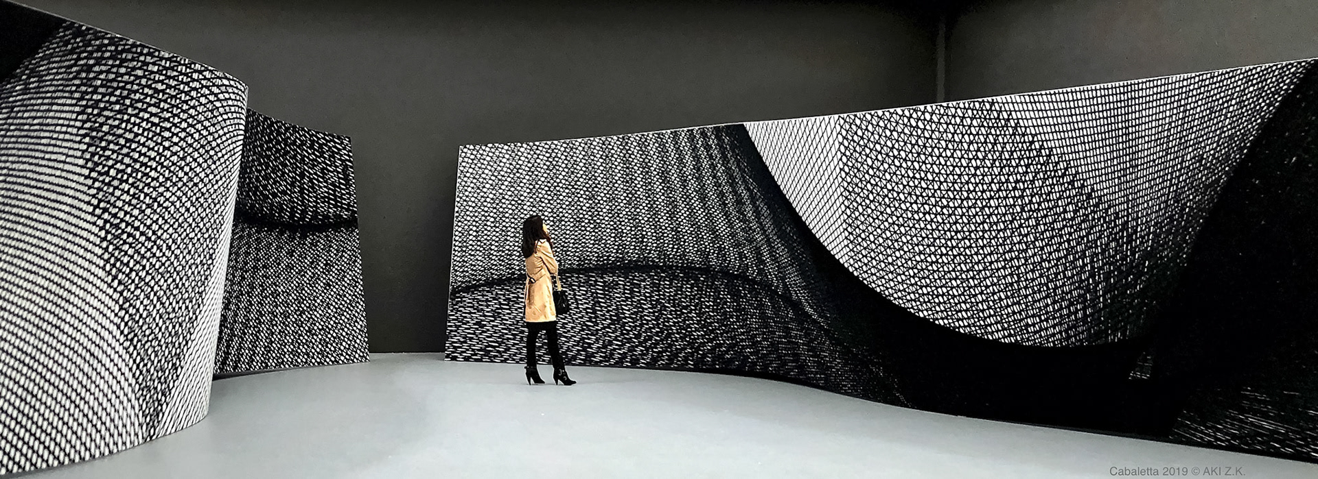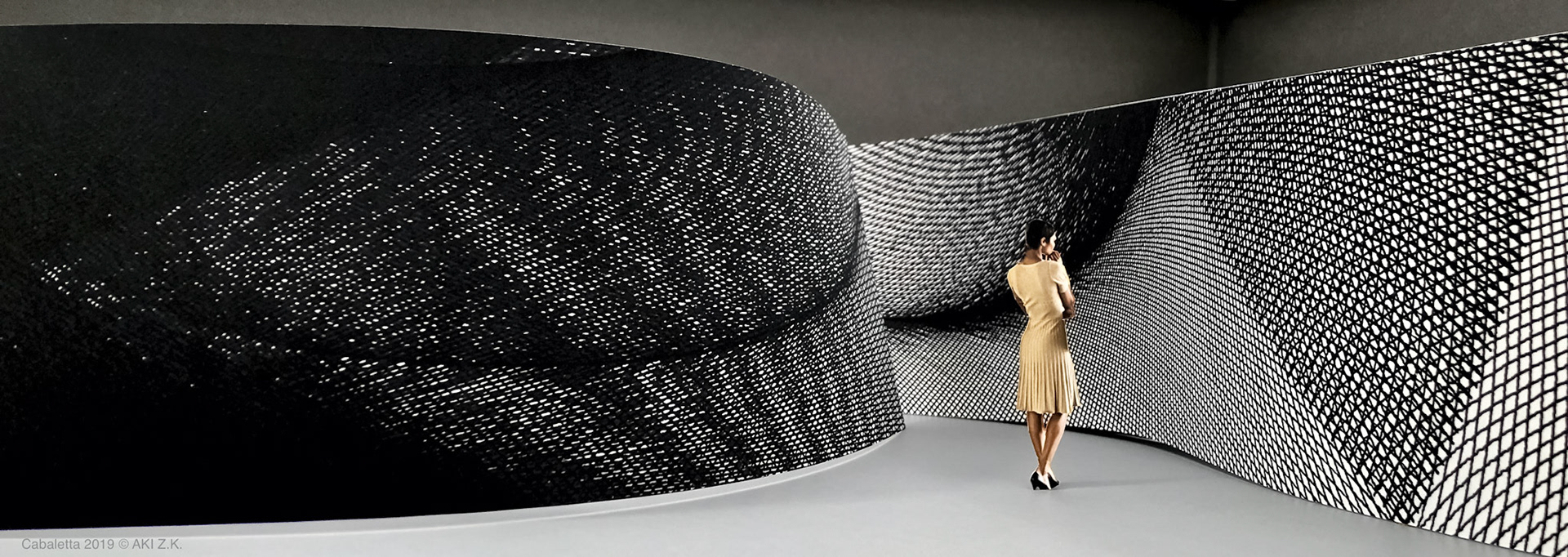 Architectural-scale art is created using a line drawing algorithm employing affine transformations of mathematical functions. The drawings are then enlarged, printed on a billboard-size canvas, and mounted on a wall surface. The walk-through room is enclosed by one convex and two serpentine walls, which are visually different yet share the same underlying equation.