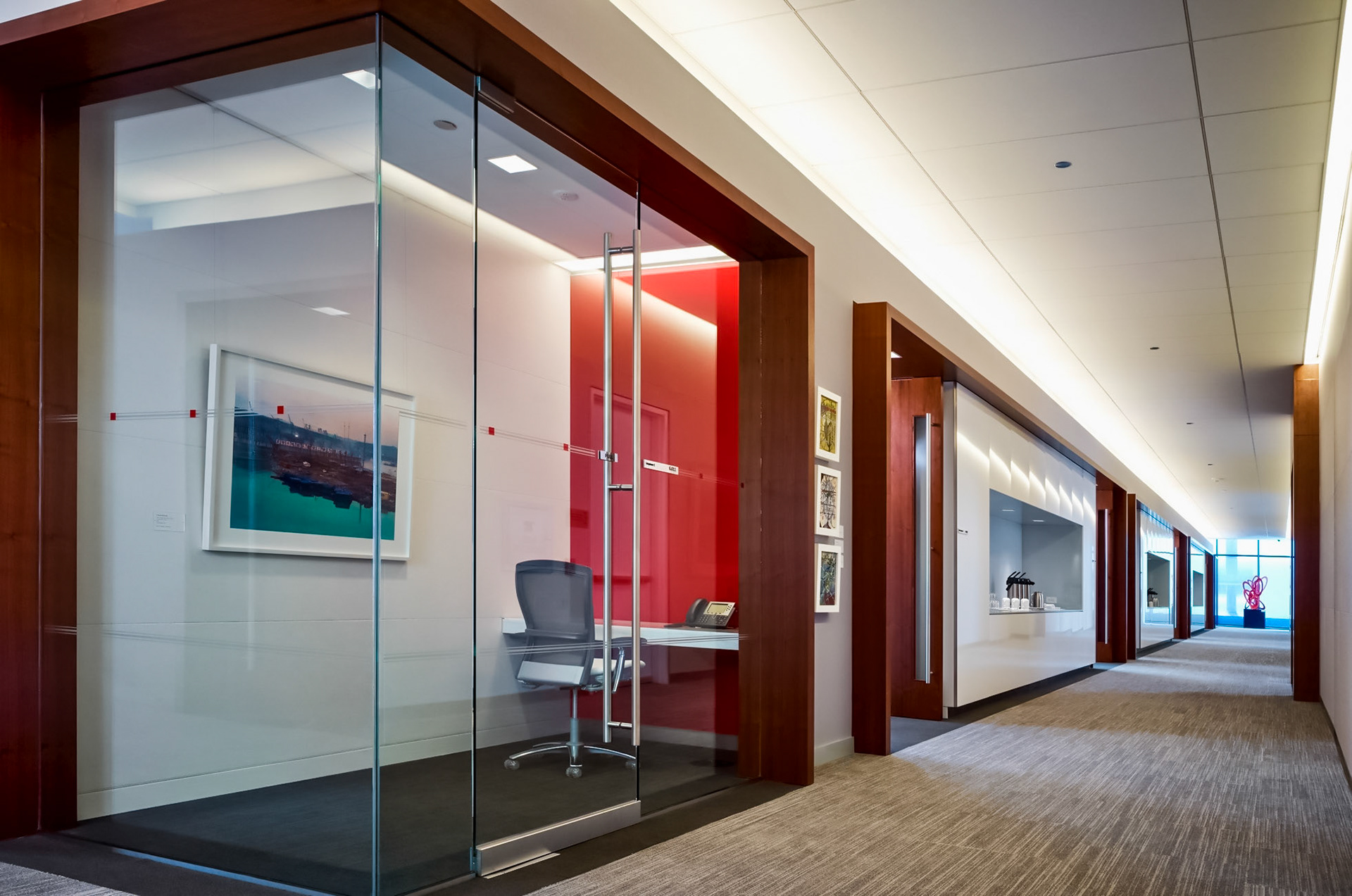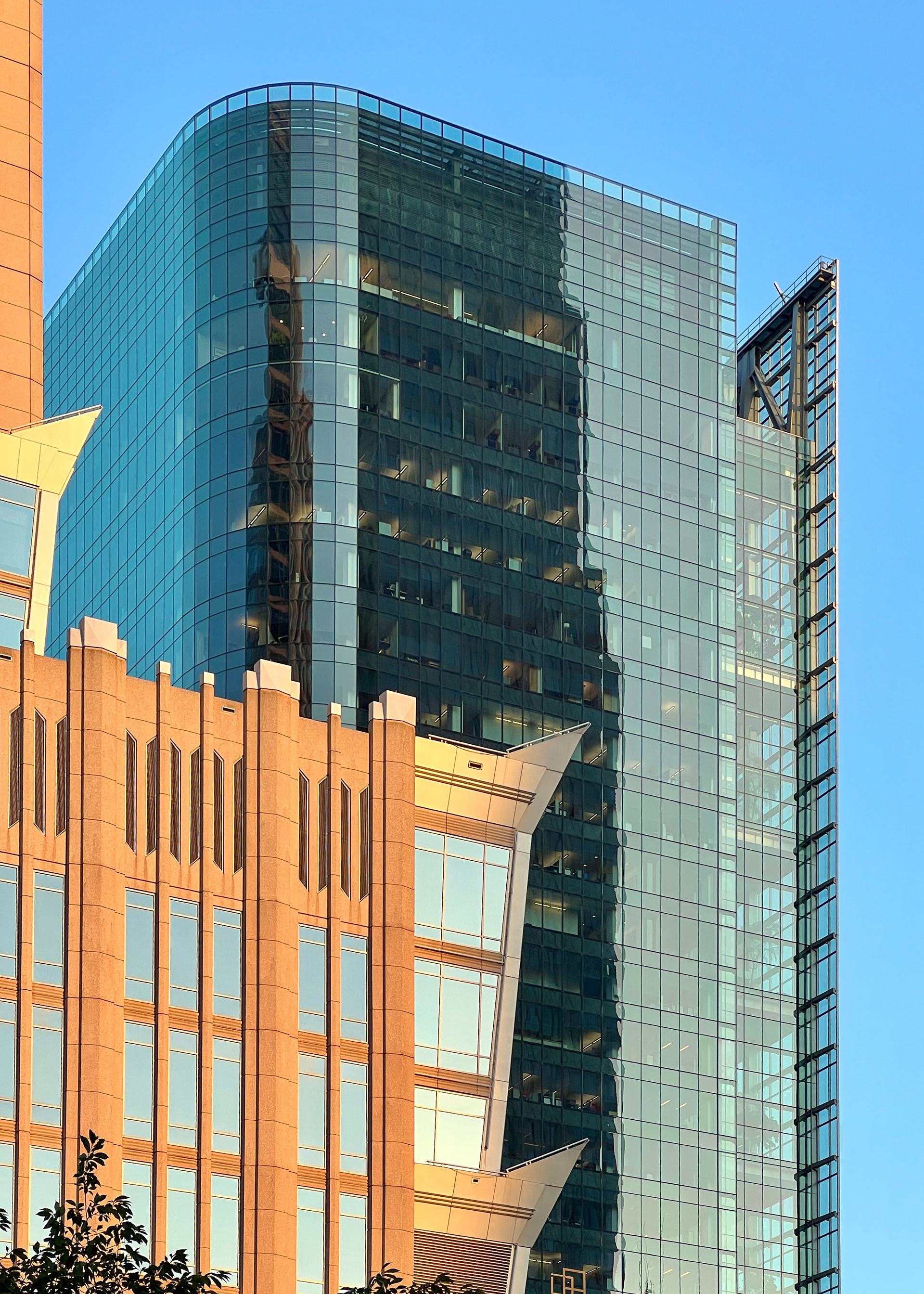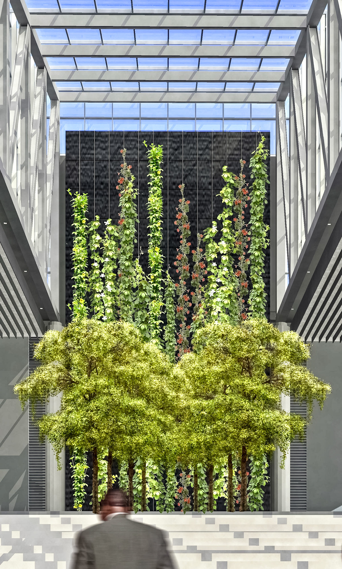 The 750,000 SF building is a 30-story office tower with an urban garden and an atrium that connects the new building to the existing headquarters and parking structure. The tower's design incorporates advanced sustainable features and cutting-edge interior landscapes with water features. A unique amenity is the 3-story sky gardens, which run continuously and vertically along the northeast and southwest corners of the office tower. The sky gardens encourage impromptu gatherings, team meetings, and relaxation areas. Designed at Perkins & Will, Aki Z. Knezevic AIA, Managing Principal, Ralph Johnson FAIA, Design Principal, Photos by James Steinkamp and A K I + Partners PLLC