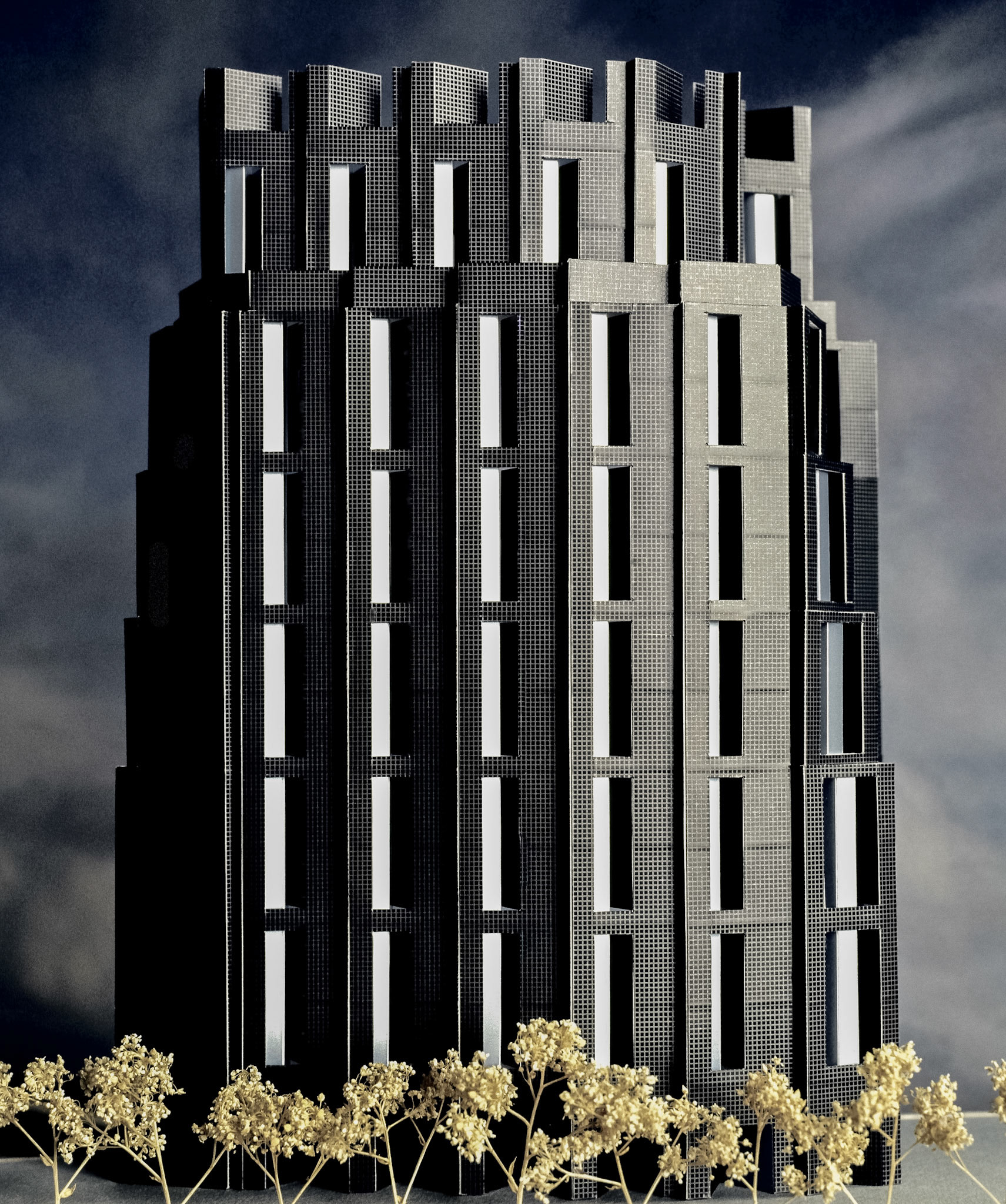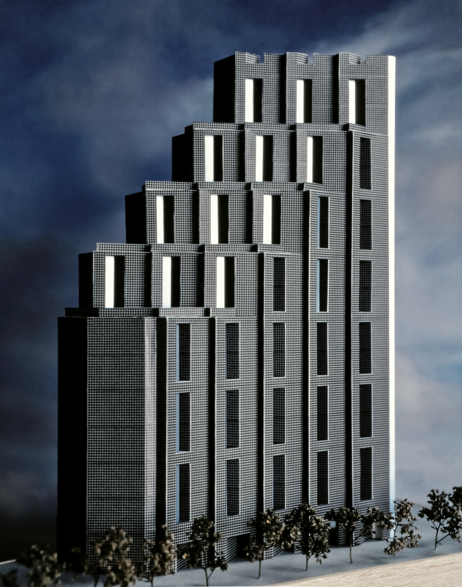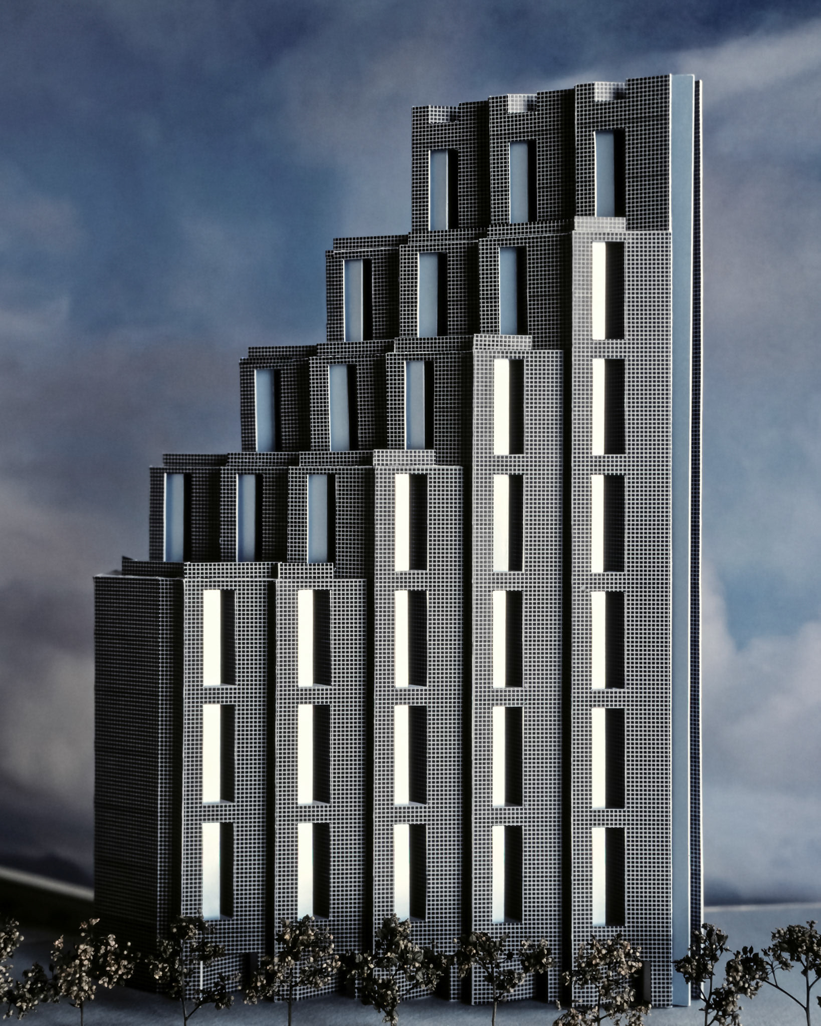 The design studies for developing an office and retail tower in the River North area of Chicago explored schemes ranging in size from 60K SF to 120K SF. The site context presented significant challenges: a long, narrow parcel along elevated train tracks, best views in only one direction, and lower-scale adjacent masonry buildings. The solution was a stepped and serrated massing to decrease the scale of the building and double-story partially recessed windows with a fine facade tile grid to change the perception of scale and orient the views in the best direction. In addition, stately vertical window proportions, instead of the “horizontal ribbon” window of typical office buildings, gave office interiors a distinctive feel and complimented a taller office ceiling space. Developer: Ross Development Company